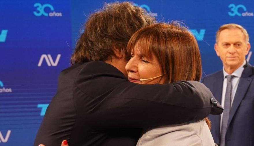 Previo a la entrevista, Javier Milei y Patricia Bullrich se tomaron una foto abrazados, una imagen significativa que de algún modo remite a otra que compartió el líder de LLA mientras la titular del PRO manifestaba su apoyo en conferencia de prensa. Al final de la nota, Bullrich dijo que “recordé el abrazo Perón y Balbín, Perón lo metió preso a Balbín. Sin embargo, en determinado momento hubo una reconciliación y fue uno de los abrazos que pasó a la historia porque las personas por el bien de la patria deben dejar de lado insultos, malos momentos y trabajar en pos del objetivo que quieren”.