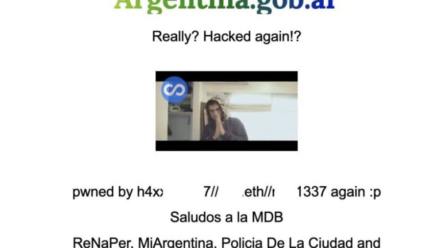Este miércoles 25 por la noche el sitio oficial del Gobierno nacional argentina.gob.ar, puntualmente el portal Mi Argentina, fue hackeado por ciberdelincuentes que modificaron los encabezados y los pies de página. Además, agregaron en algunas secciones videos de un rapero, dejaron sus firmas y el mensaje en tono de burla “Really? Hacked again!?” (¿en serio? ¿los hackearon de nuevo?), además de textos en contra del Gobierno. Los hechos, denunciados por especialistas en tecnología, fueron confirmados por la Secretaría de Innovación, Ciencia y Tecnología, desde la que lamentaron la falta de inversión en ciberseguridad de los gobiernos anteriores.